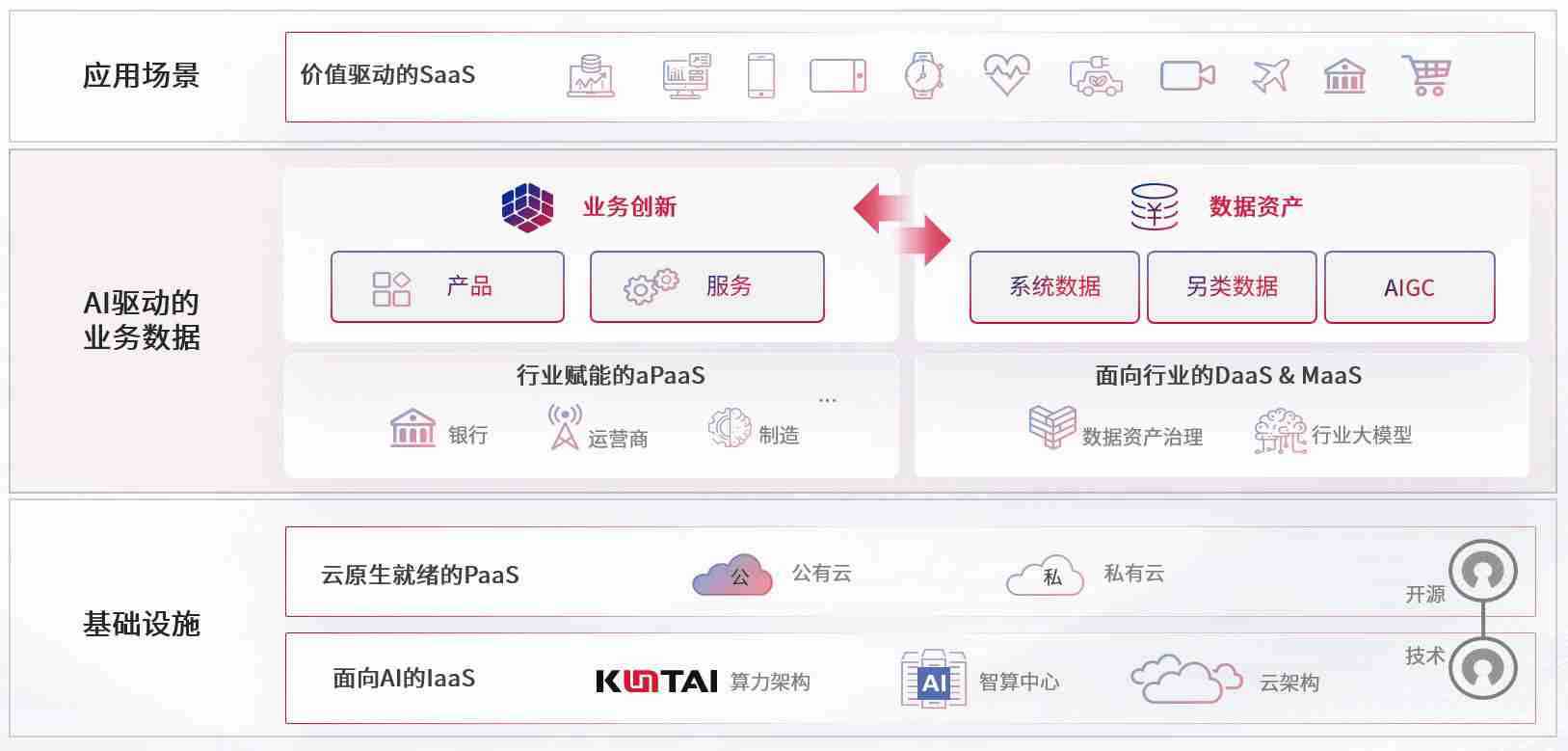 数字时代,,围绕企业数字化转型的关键要素,,,,k豆钱包数码开创性的提出数云融合战略和技术体系框架,,,,着力在云原生、、、、数字原生、、、、AI原生和信创产业上架构产品和服务能力,,为处在不同数字化转型阶段的快消零售、、、汽车、、金融、、医疗、、、政企、、、教育、、运营商等行业客户提供泛在的敏捷IT能力和融合的数据驱动能力,,,构建跨界融合创新的数字业务场景和新业务模式,,助力企业级客户建立面向未来的核心能力和竞争优势,,全面推动社会的数字化、、、、智能化转型升级。。